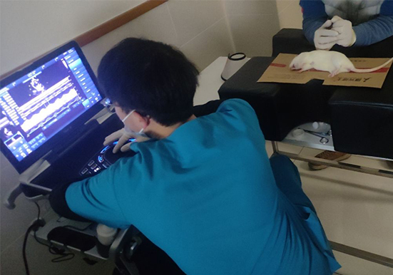 利用超声波的物理特性和小动物机体组织器官对超声波的反射、折射、散射等效应,通过超声仪器将这些信号转化为图像,从而观察小动物体内的器官结构、组织形态及血流情况等。